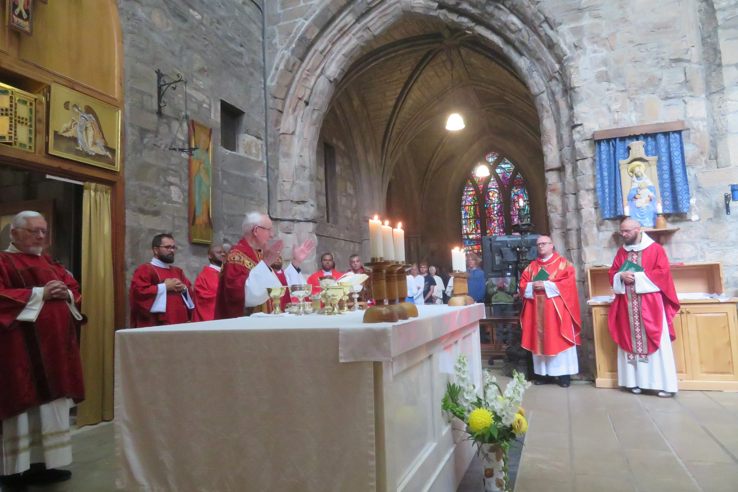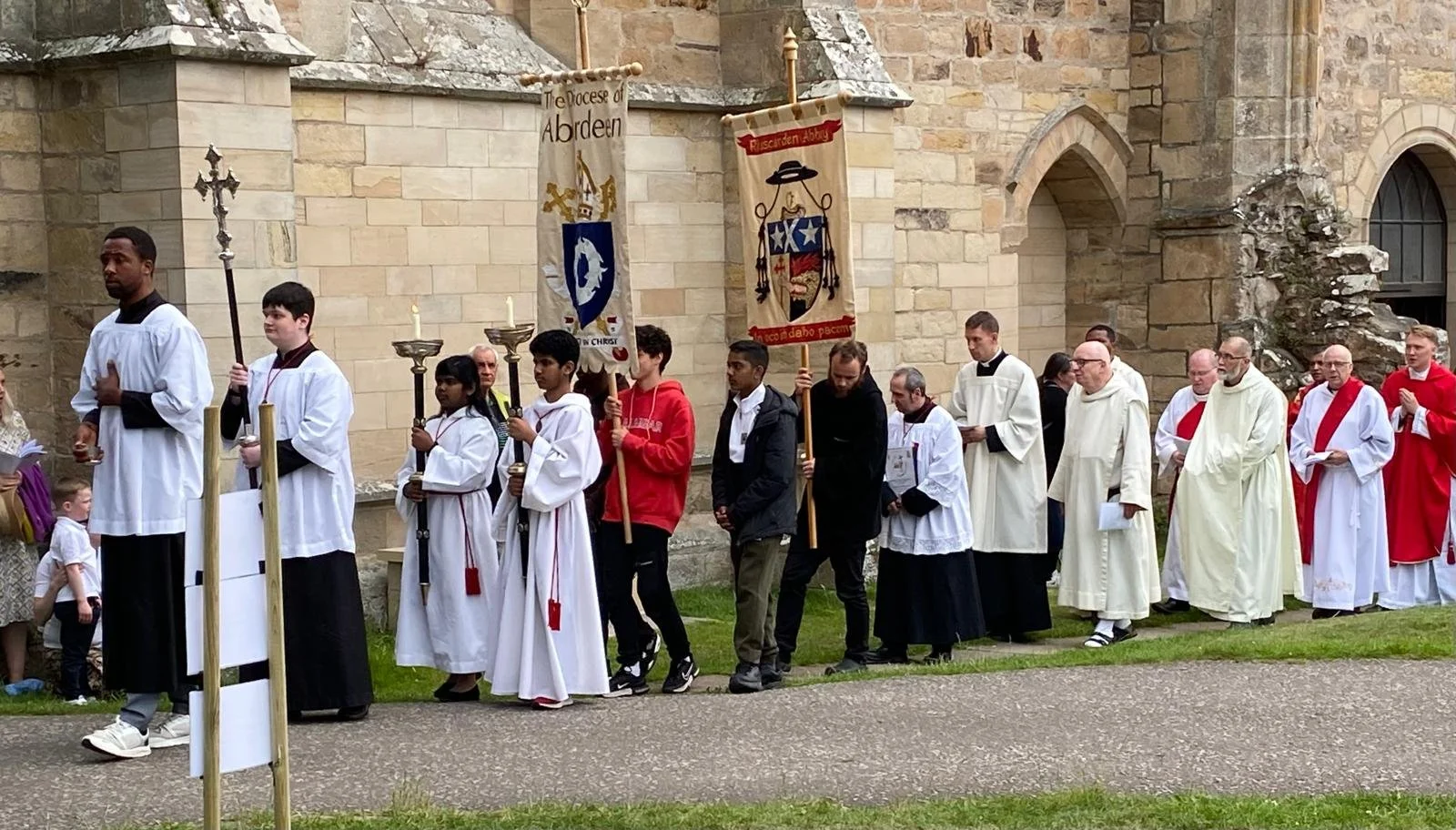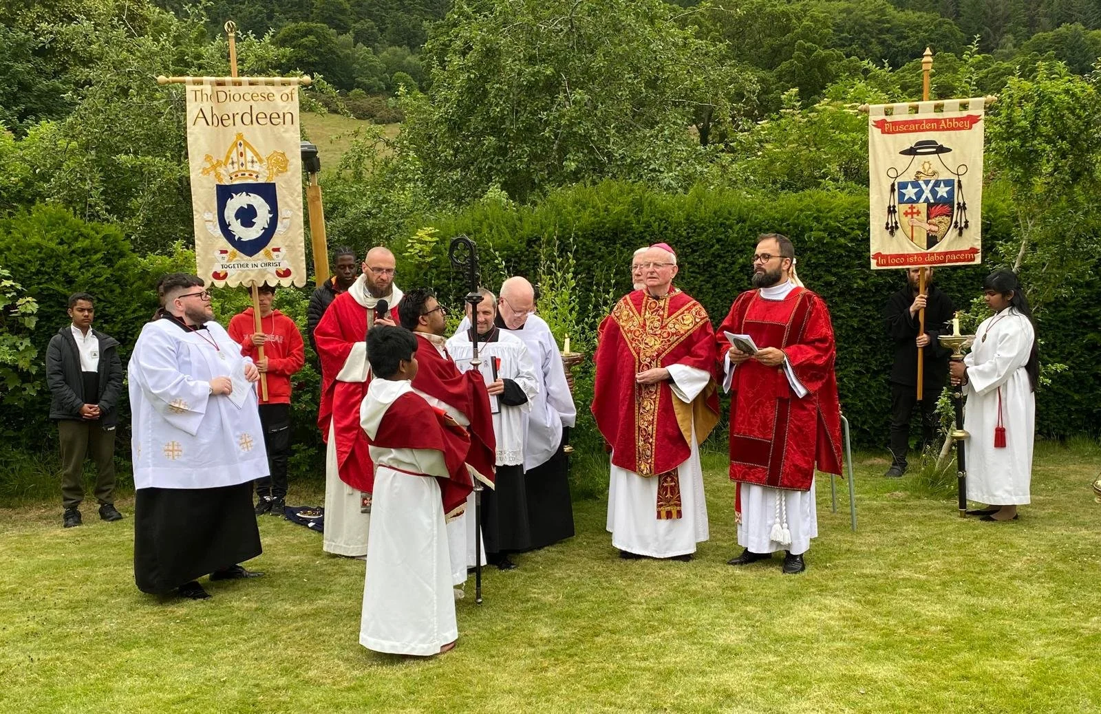 To describe this year’s annual Diocesan Pilgrimage to Pluscarden, much of what was said in these pages about the 2024 event could almost be repeated. The format remained the same; the Feast was the same (SS. Peter and Paul, 29 June), the place, the Mass time (3.00 p.m.) and many of the people were the same: Bishop, clergy, monks, people! We had two large marquees as before, and Choirs as before, and Exposition before the Mass as before, and a Marian procession after it, as before, and (as before) many volunteers involved in the organisation, which all went extremely well. Nevertheless, this 2025 event certainly merits its own description, for it was marvellous! And since the Pluscarden Diocesan Pilgrimage is such a most notable event in the year both for the Diocese and for the Abbey, it should not pass unrecorded!