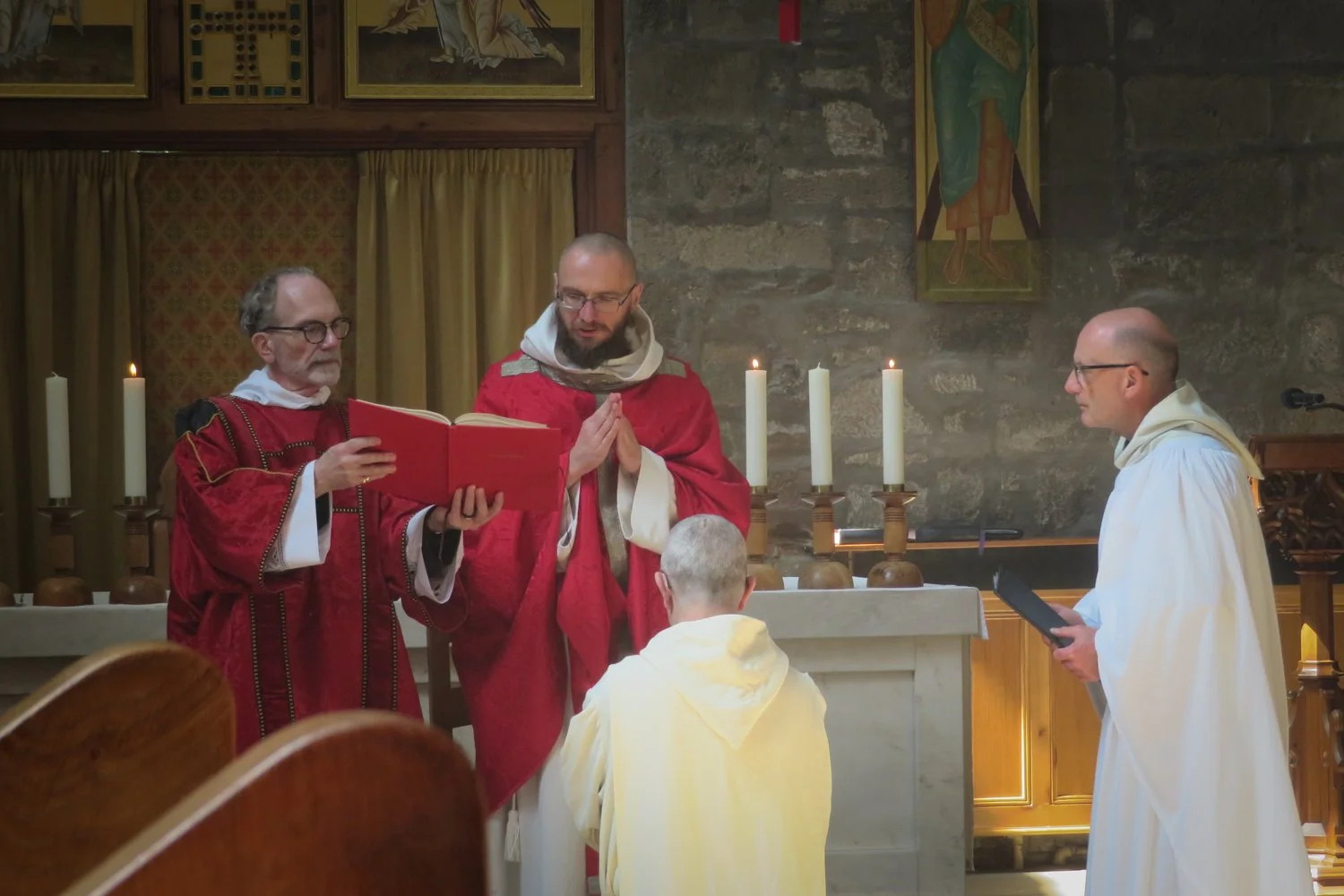 Our Bishop Hugh was with us for the occasion, and preached at Mass. 25 years ago, in the year 2000, Bishop Hugh was of course Abbot of Pluscarden: so it was he who received Br. Daniel's first Profession.